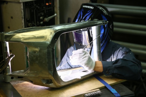この形を実現するには、フレーム、エンジン、カウル・・・挙げきれない程、知恵と工夫をしぼって手を加える必要があります。