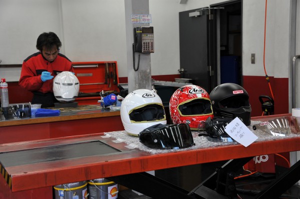本日お預かりしたヘルメットの下地作りに奮闘中。