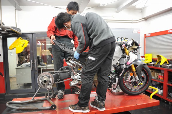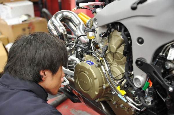 カウル類は全て外し、なにやら黙々と作業をするメカニックさん