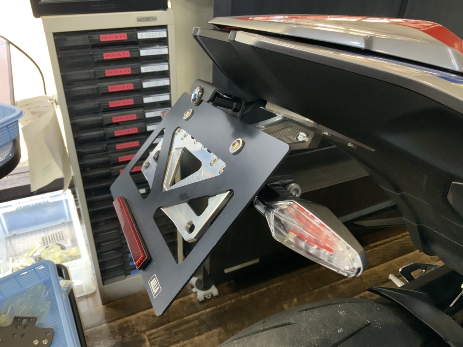 ・AELLAパーツを装着した車両、’19 S1000RRと’19 R1250RSを展示。もちろんご試乗OKです。