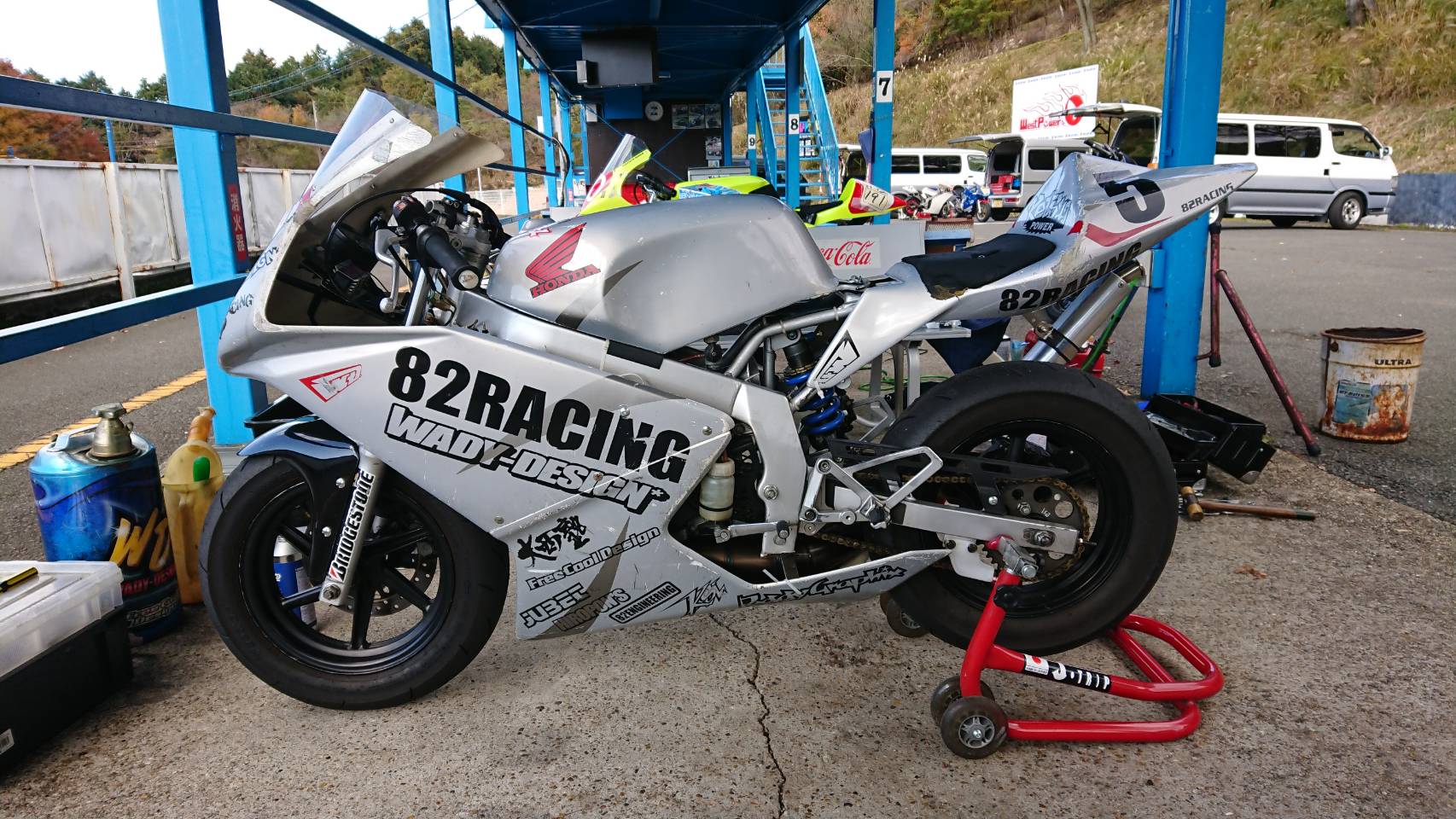 当時の本国仕様はとても美しくまとめられたアンダーマフラースタイルでしたが、日本では公道走行することができなかったため、サーキット仕様にしています。