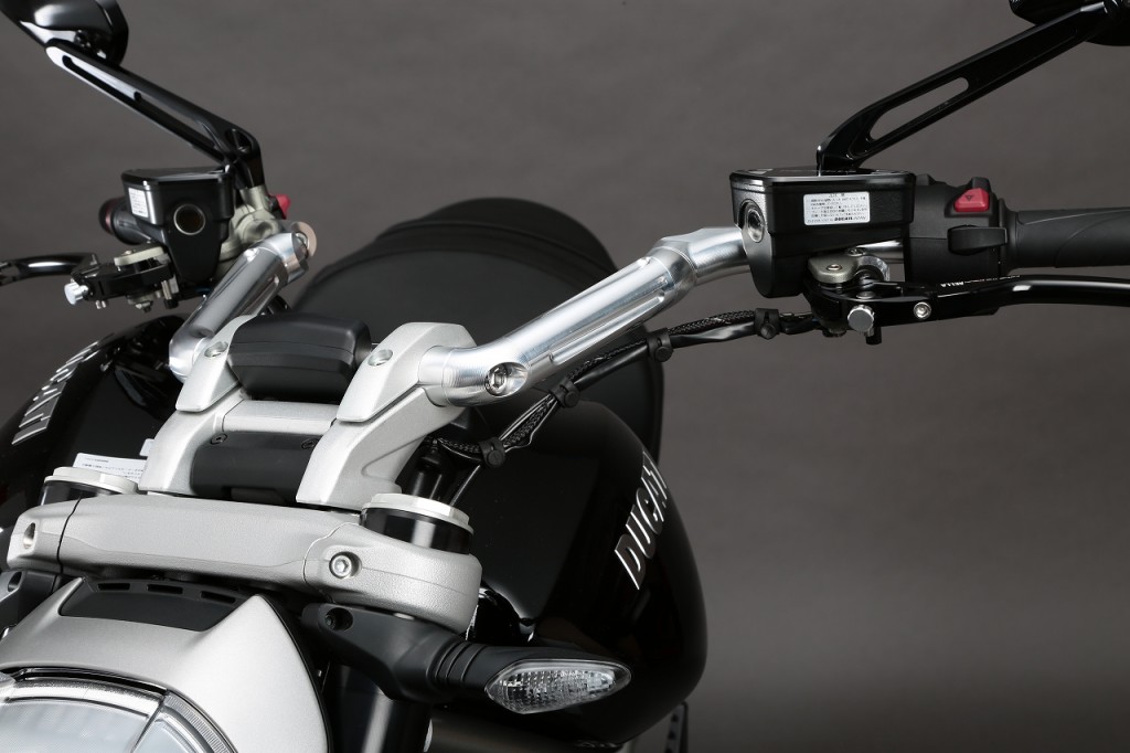 ドゥカティ可変ハンドルシリーズ5番目の登場はX DIAVEL。 経も太く立ち上がり部分も迫力があります! 振動を軽減し、長距離ツーリングなどの腕の疲れを抑える効果も期待できます。[/caption]