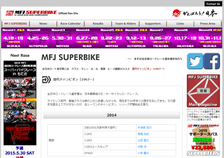 HPを探索していると、全日本ロードレース選手権のページを発見しました! http://www.superbike.jp/superbike/page5.html